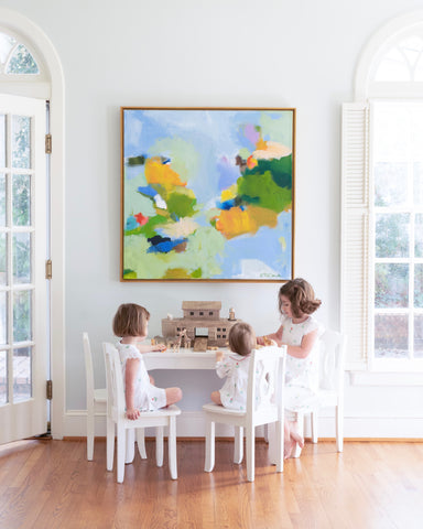 I studied Studio Art and English at Wake Forest University. After college, I worked on the editorial staff of several publications. My three children – and the responsibilities of motherhood -- are to thank for forcing me to put down the pen and pick up the paintbrush. Beyond bringing me an incredible amount of joy and satisfaction, life as a painter also affords me the ability to work from home, set my own schedule and create without the threat of anything being edited out.