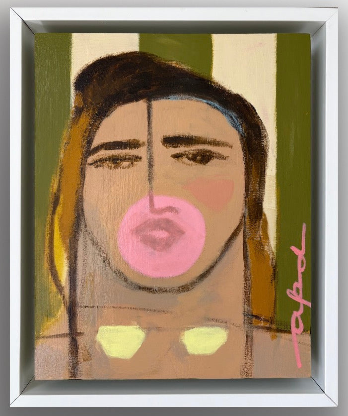 acrylic on panel, framed in a white float frame