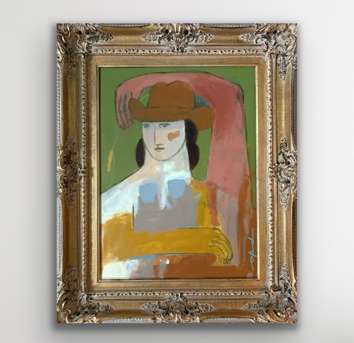 acrylic on canvas framed in a deep antique gold frame