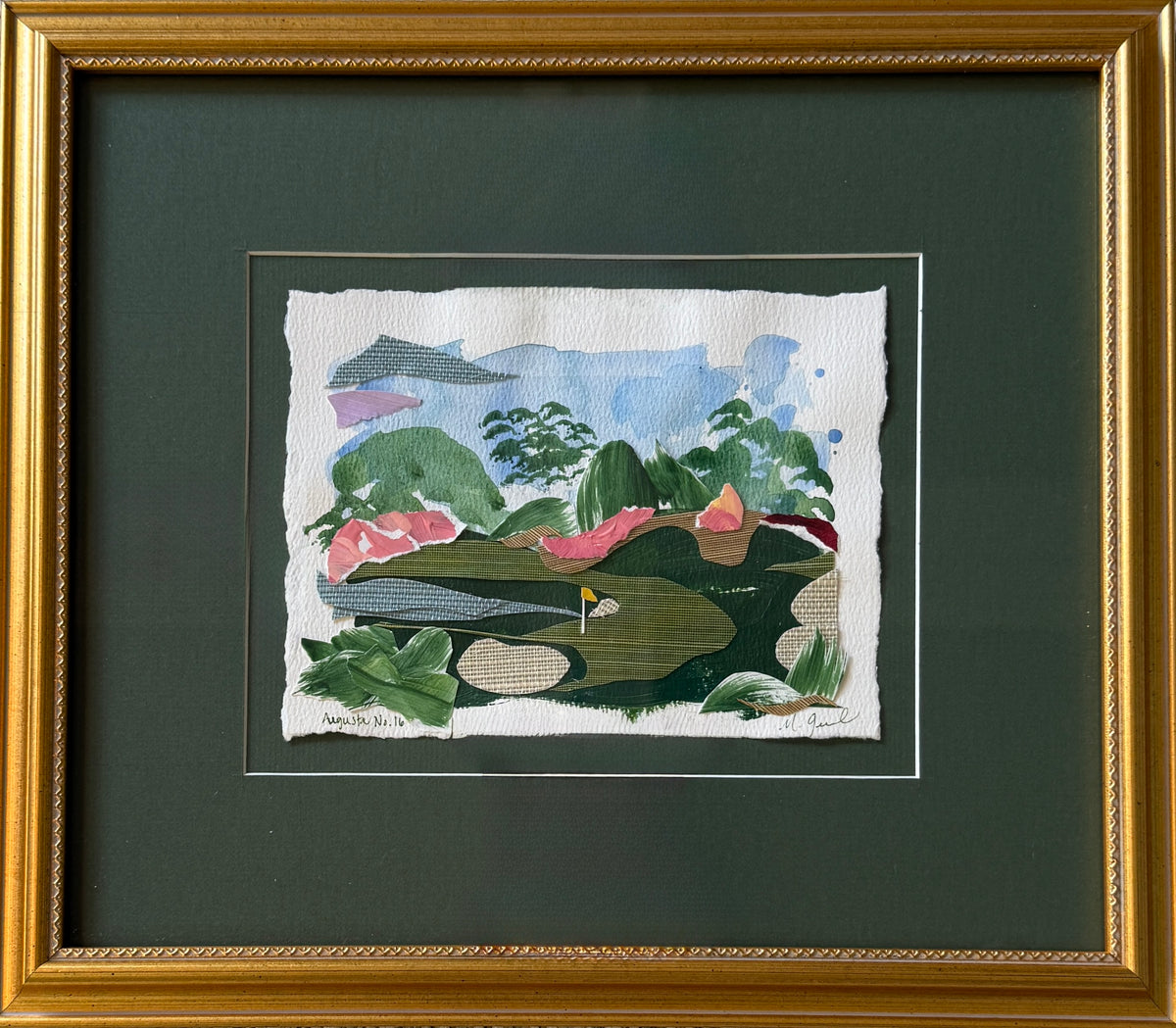 painted paper collage, framed