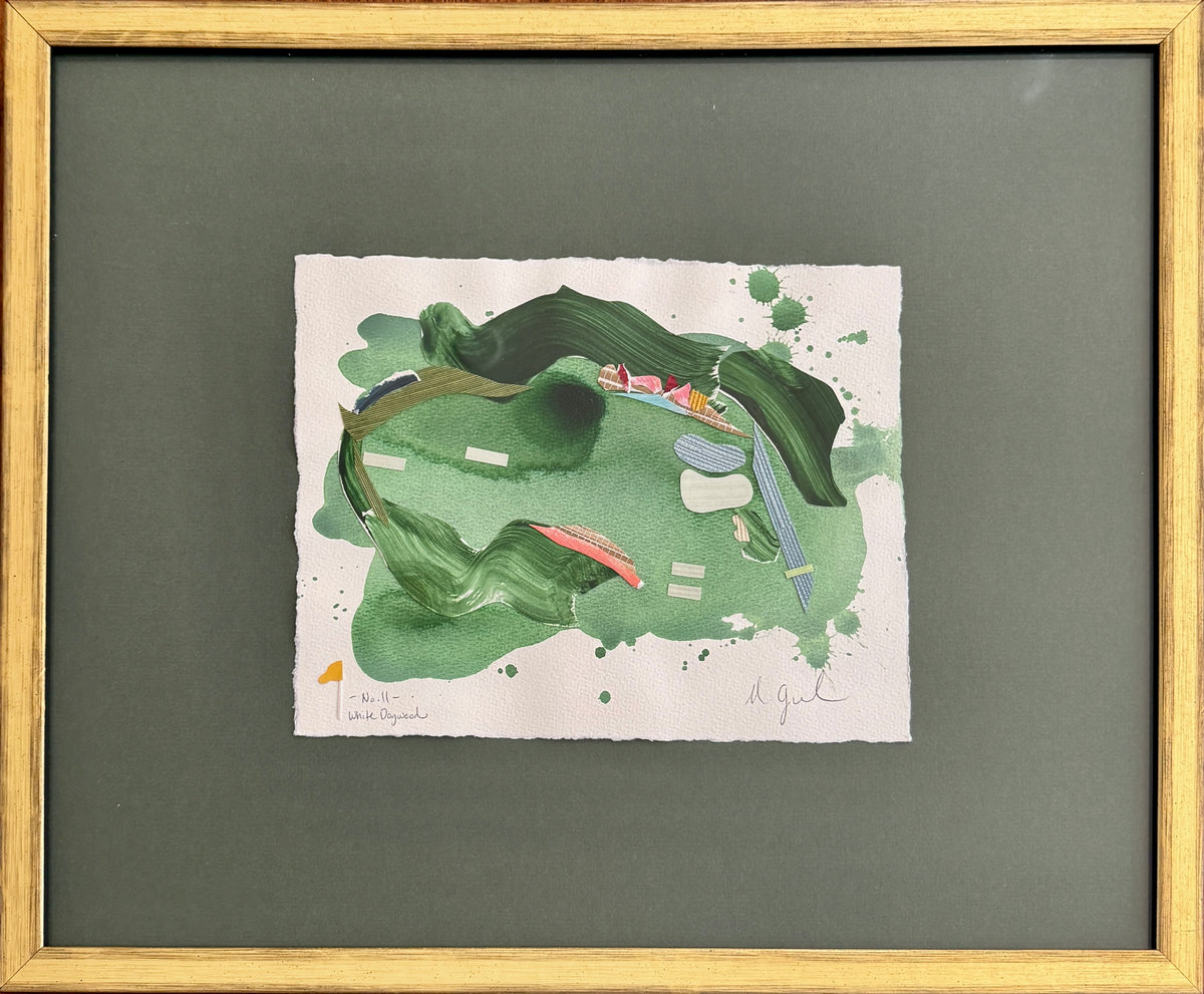 painted paper collage, framed