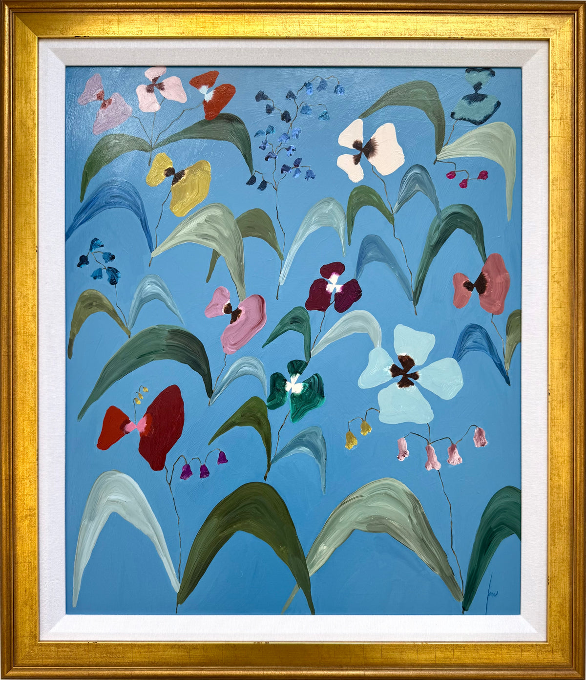 acrylic on panel, framed in gold with a linen mat
